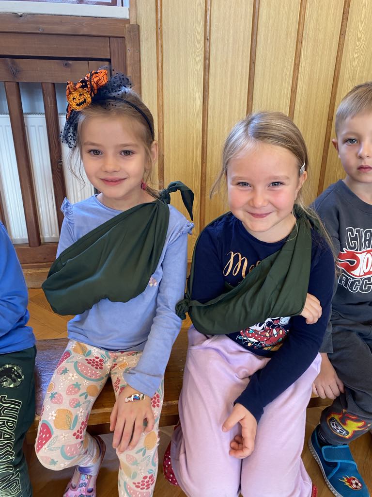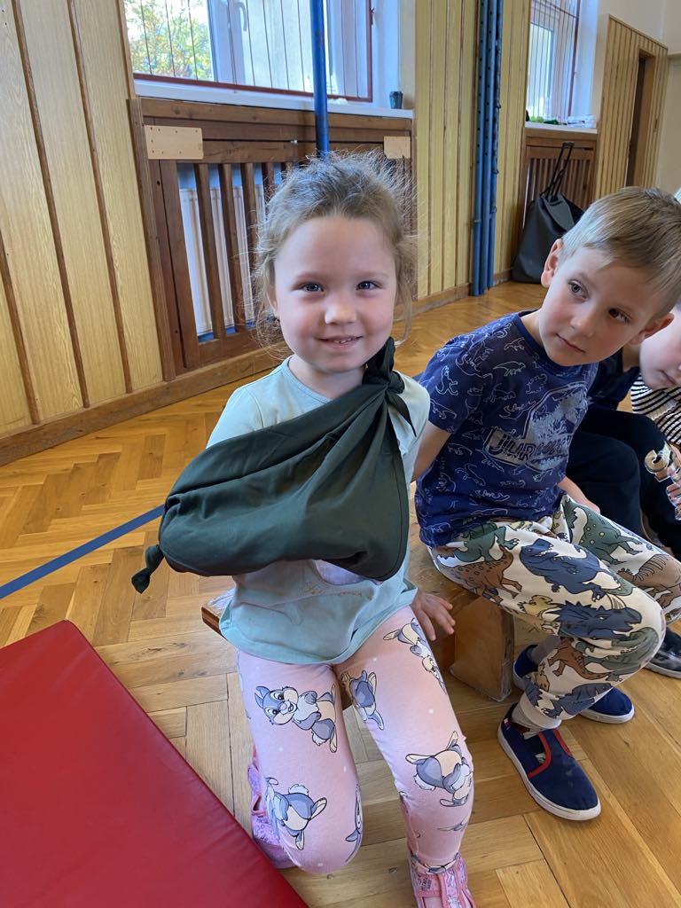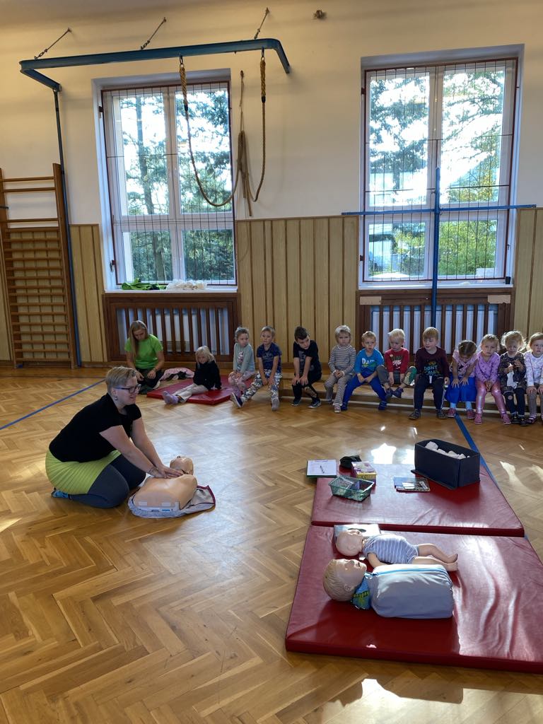 Ve čtvrtek 17. 10. 2024 navštívily naši mateřskou školu záchranářky ze sdružení Červeného trpaslíka s ukázkou první pomoci pro děti. Děti si vyzkoušely lepení náplasti, práci s obvazem, uvazování šátku a resuscitaci na figuríně. Nakonec si děti zasoutěžily v závěrečném kvízu o odměny.