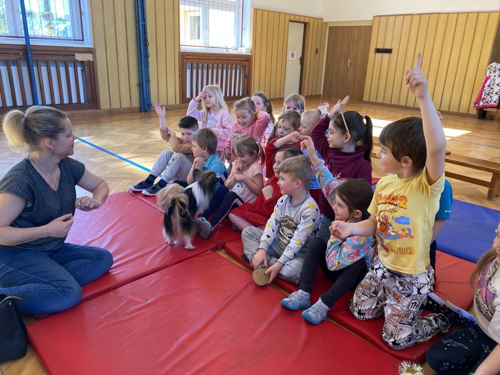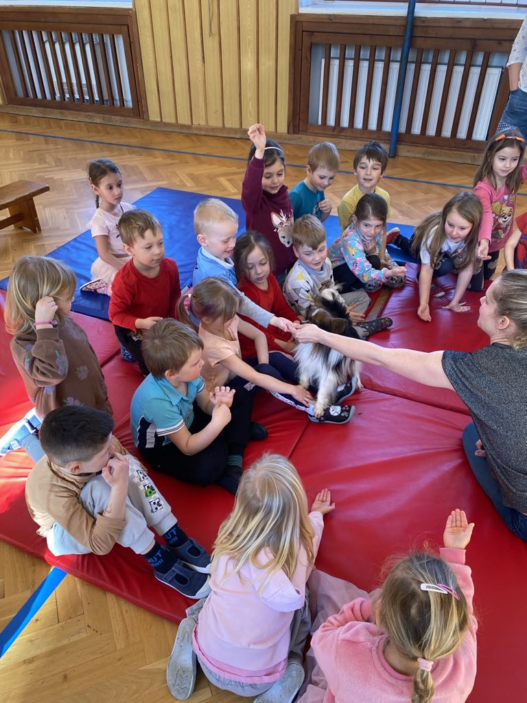 Ve čtvrtek 3. 4. 2025 nás v mateřské škole navštívil pejsek Dorian spolu se svou paničkou. Děti se během tohoto programu naučily, jak se mají chovat a zacházet s pejskem.