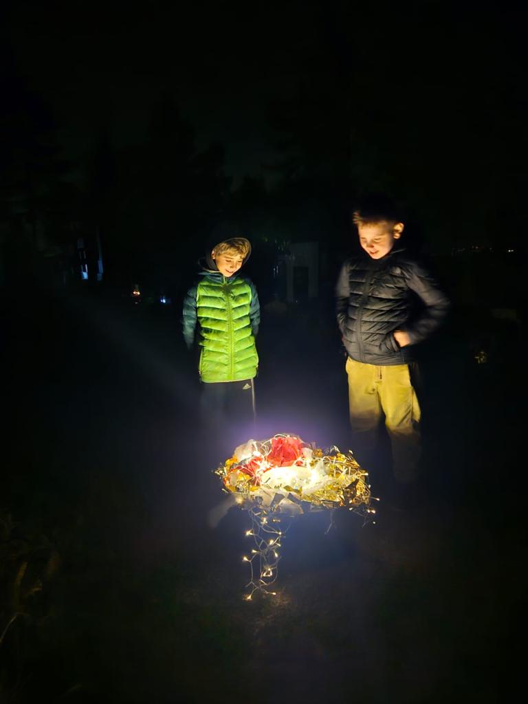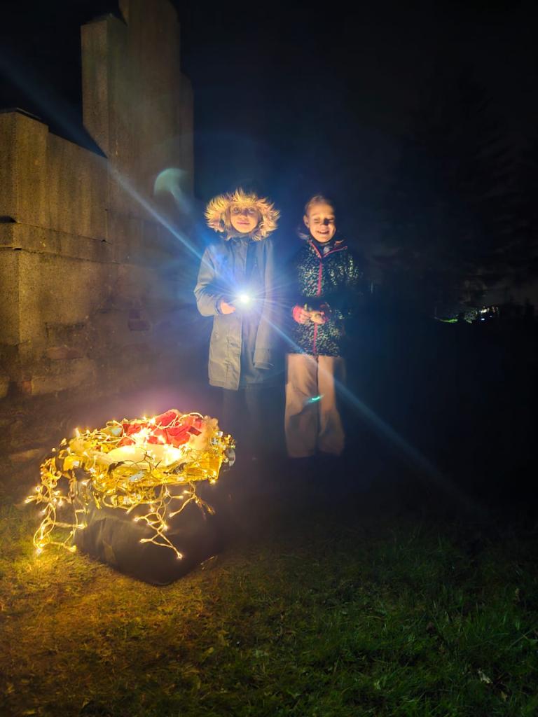 Páteční "Dušičkové přespávání" se neslo v duchu českých tradic. Nejprve jsme společně povečeřeli a nabrali sil na plnění dušičkových úkolů. Děti zavzpomínaly na své milované zesnulé a před spaním si statečně došly pro své benefity na místní hřbitov. Všichni jsme si přespání užili.