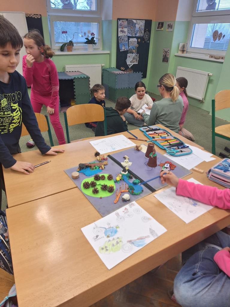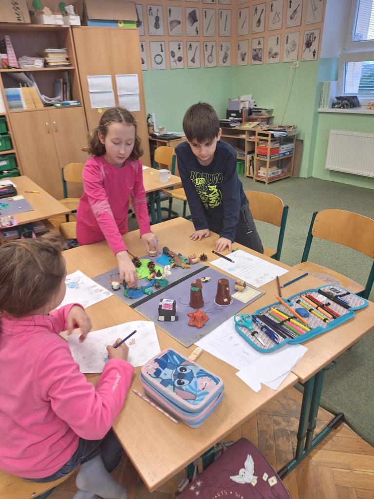 Žáci 2. a 3. třídy modelovali krajinu.