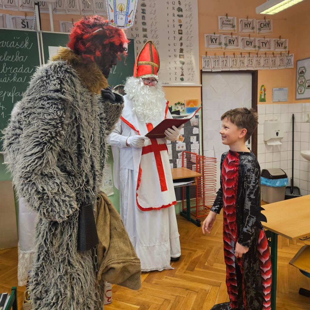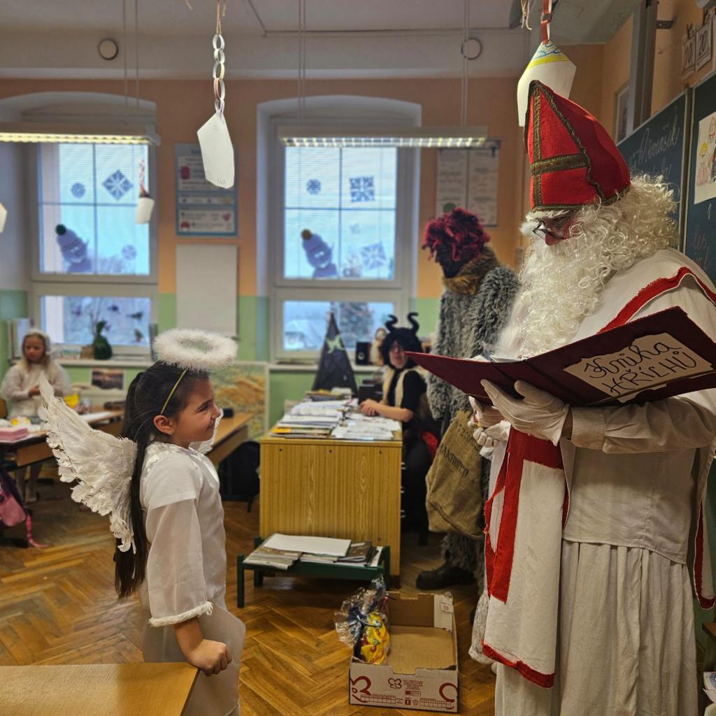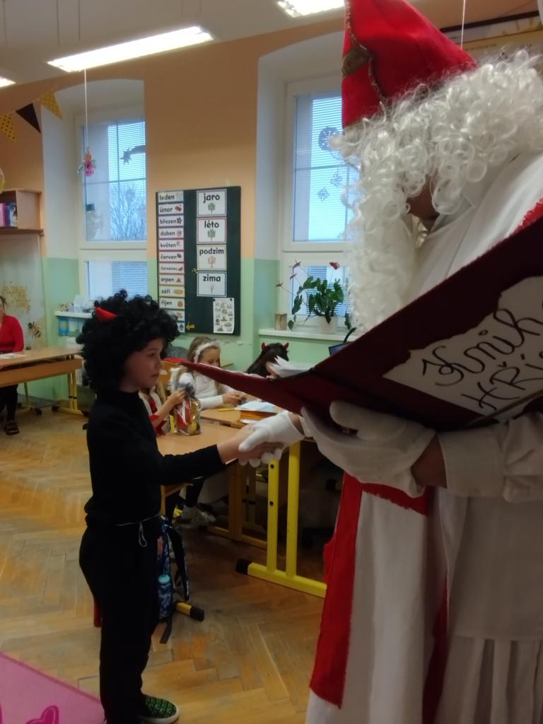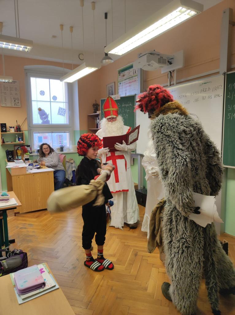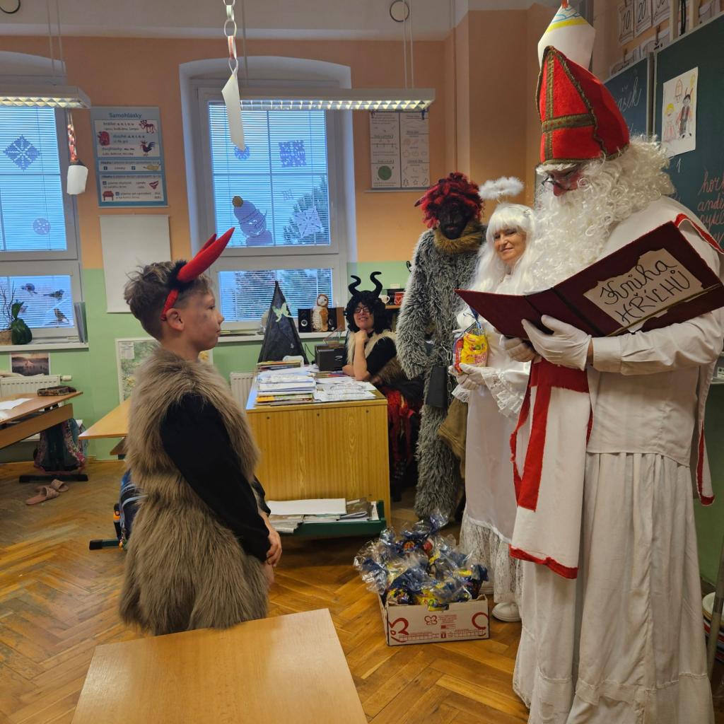 Dnes k nám do školy zavítal Mikuláš s andělem a čertem. Všechny děti si jejich návštěvu náležitě užily.