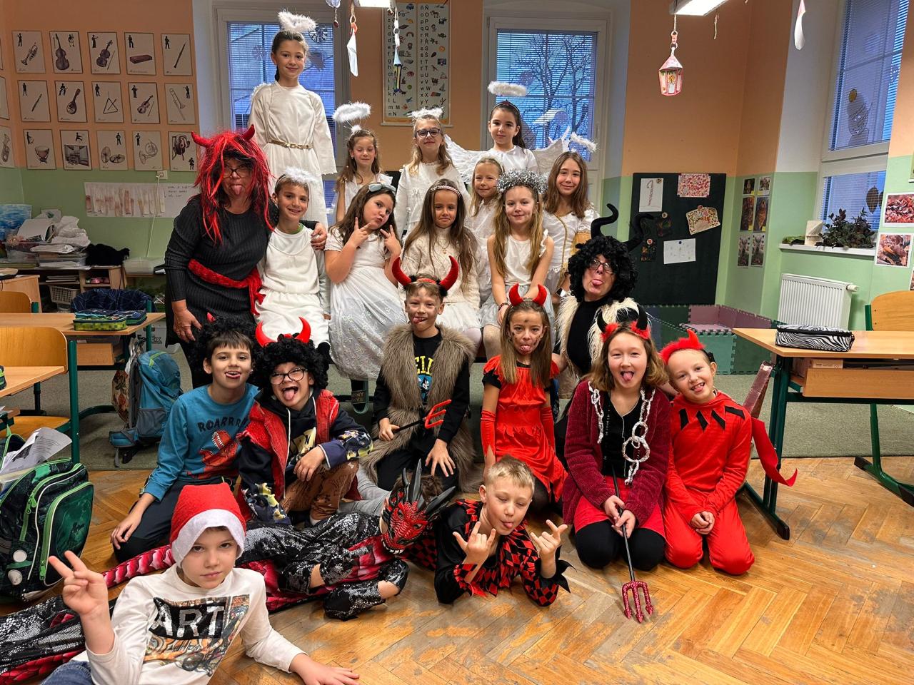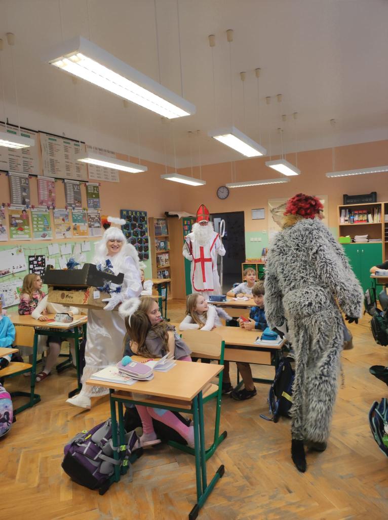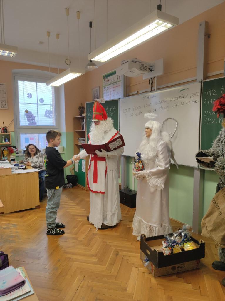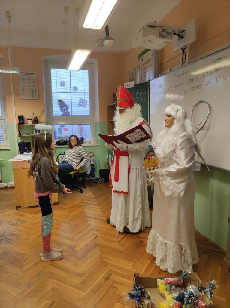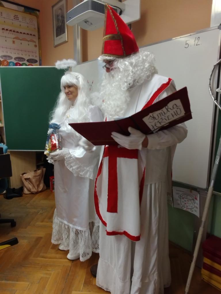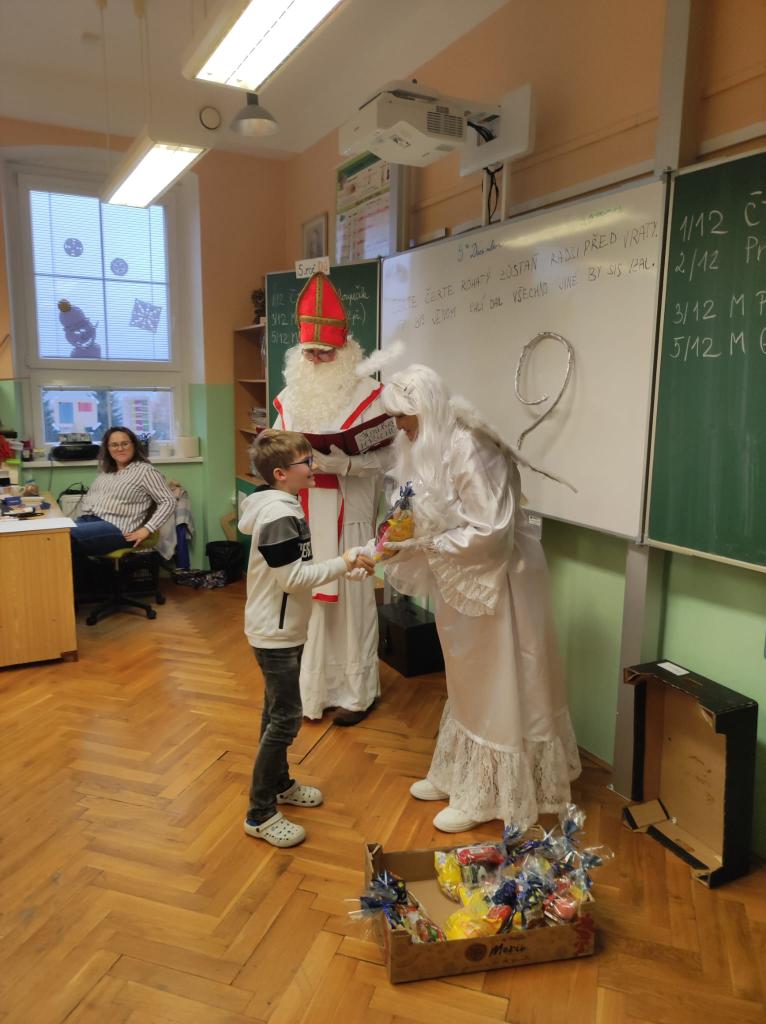 Dnes k nám do školy zavítal Mikuláš s andělem a čertem. Všechny děti si jejich návštěvu náležitě užily.