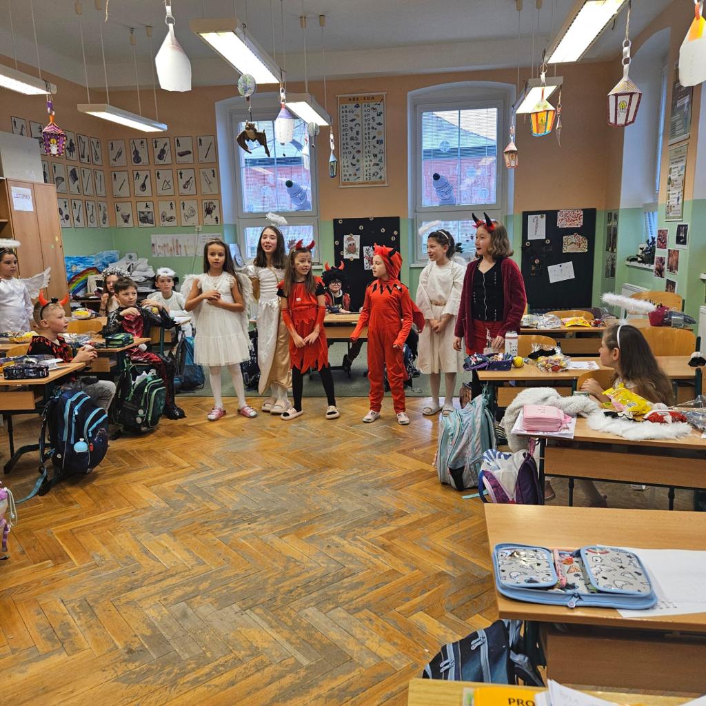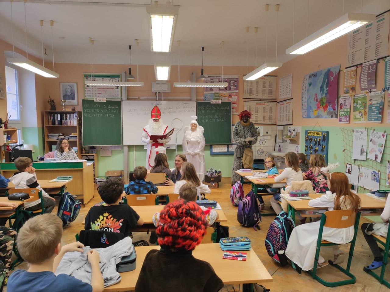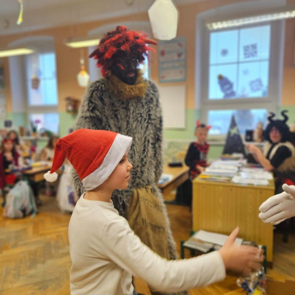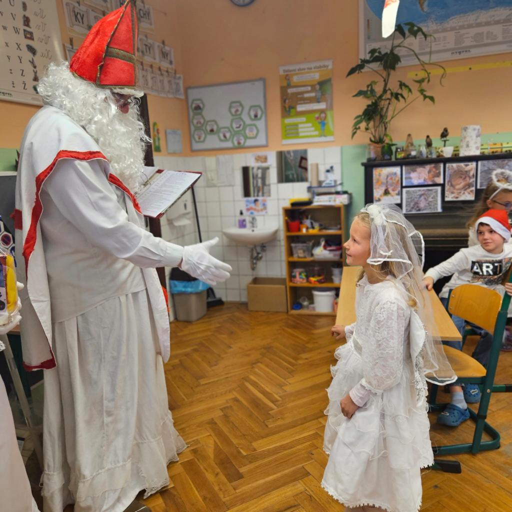 Dnes k nám do školy zavítal Mikuláš s andělem a čertem. Všechny děti si jejich návštěvu náležitě užily.